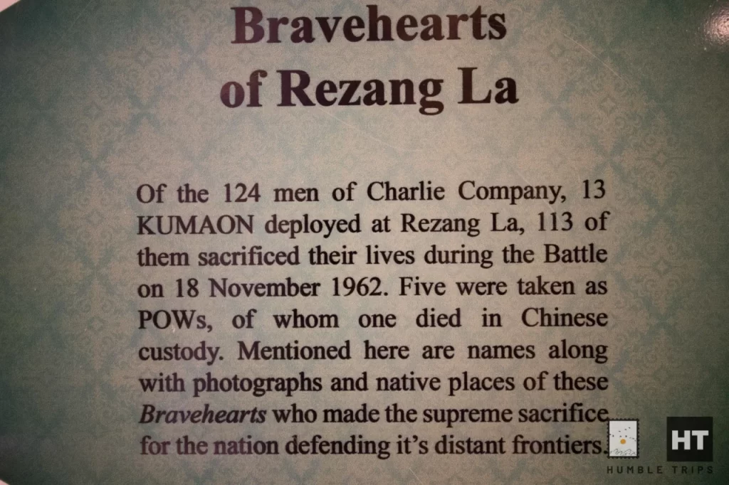 The memorial honors the bravery of Major Shaitan Singh and his men, who fought to the last bullet in sub-zero conditions, outnumbered but unbroken. The sacrifice here is legendary—120 soldiers fought against thousands, and almost all were martyred. The site still echoes with their courage.